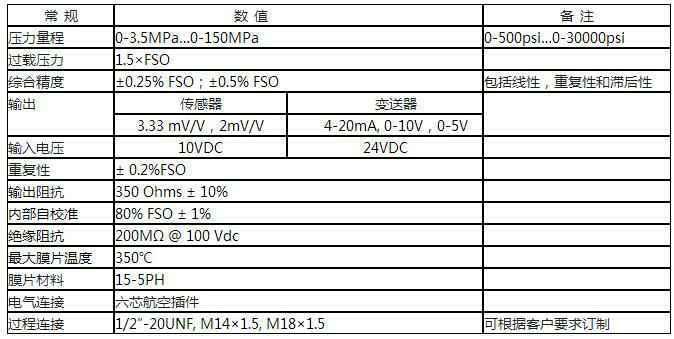 精度:±0.25% FSO;±0.5% FSO
