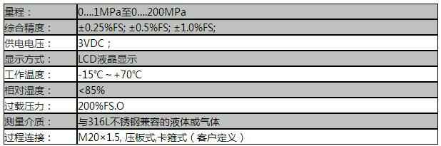 精度:±0.25%FS; ±0.5%FS; ±1.0%FS;